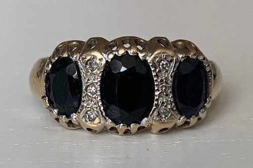 خاتم كلاسيكي من الذهب عيار 9 قيراط من الياقوت والألماس عيار 2 قيراط، مقاس المملكة المتحدة N 1/2-O، مقاس الولايات المتحدة 7 -