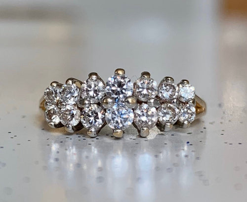 Anillo de oro de 9 quilates con racimo de diamantes vintage -