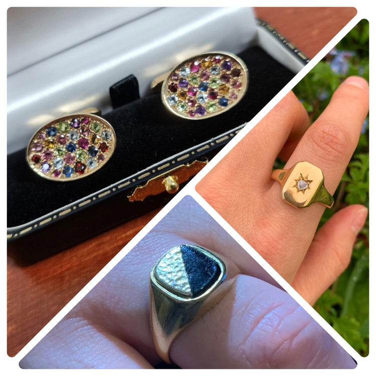Gemelos de arcoíris con sello de oro de 9 quilates con rubí, zafiro, aguamarina, granate y amatista, regalos para él