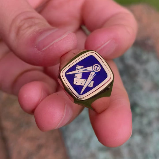 Pre-loved Masonic Swivel/Reversible Blue Enamel &9ct Gold Ring