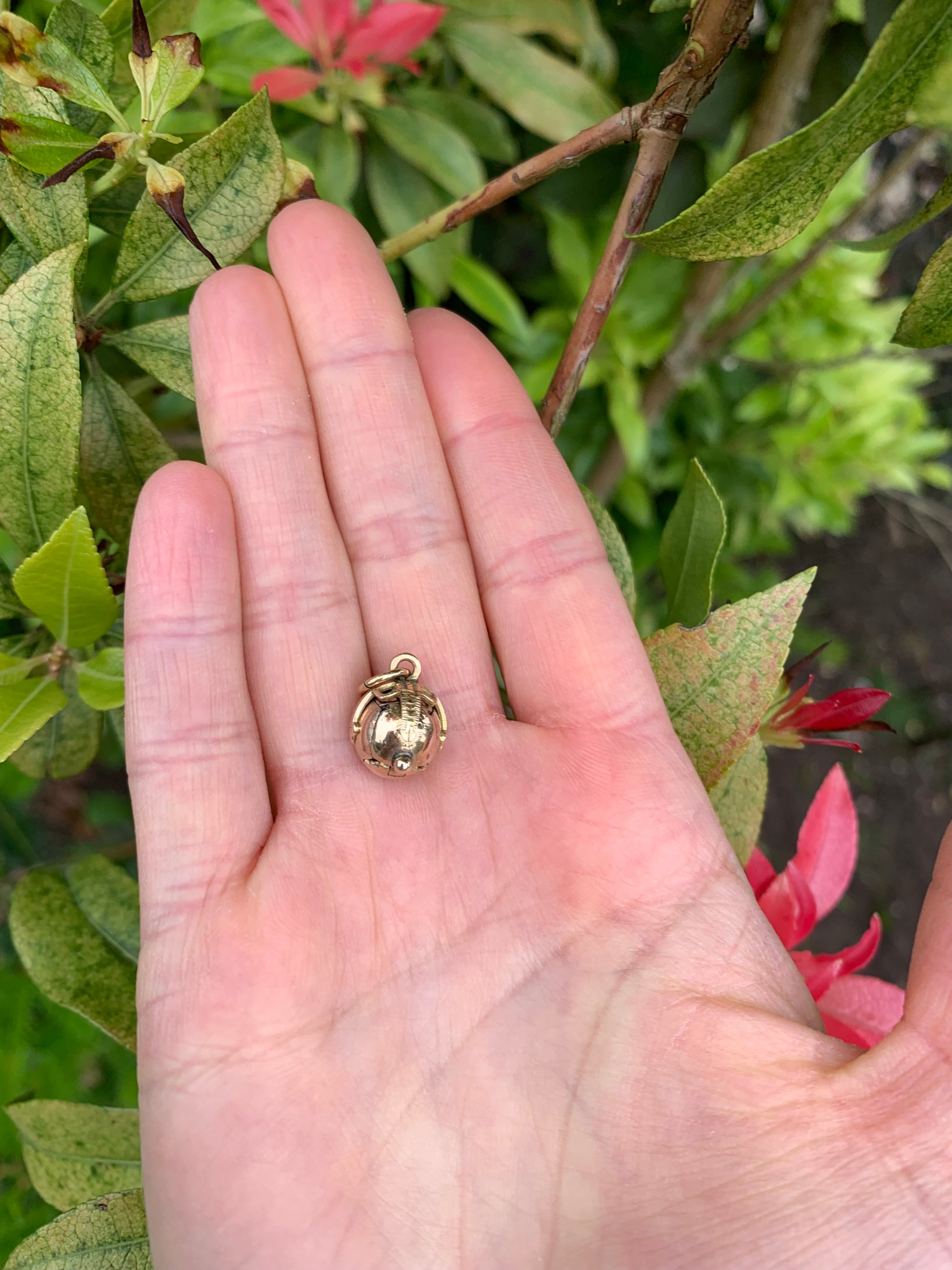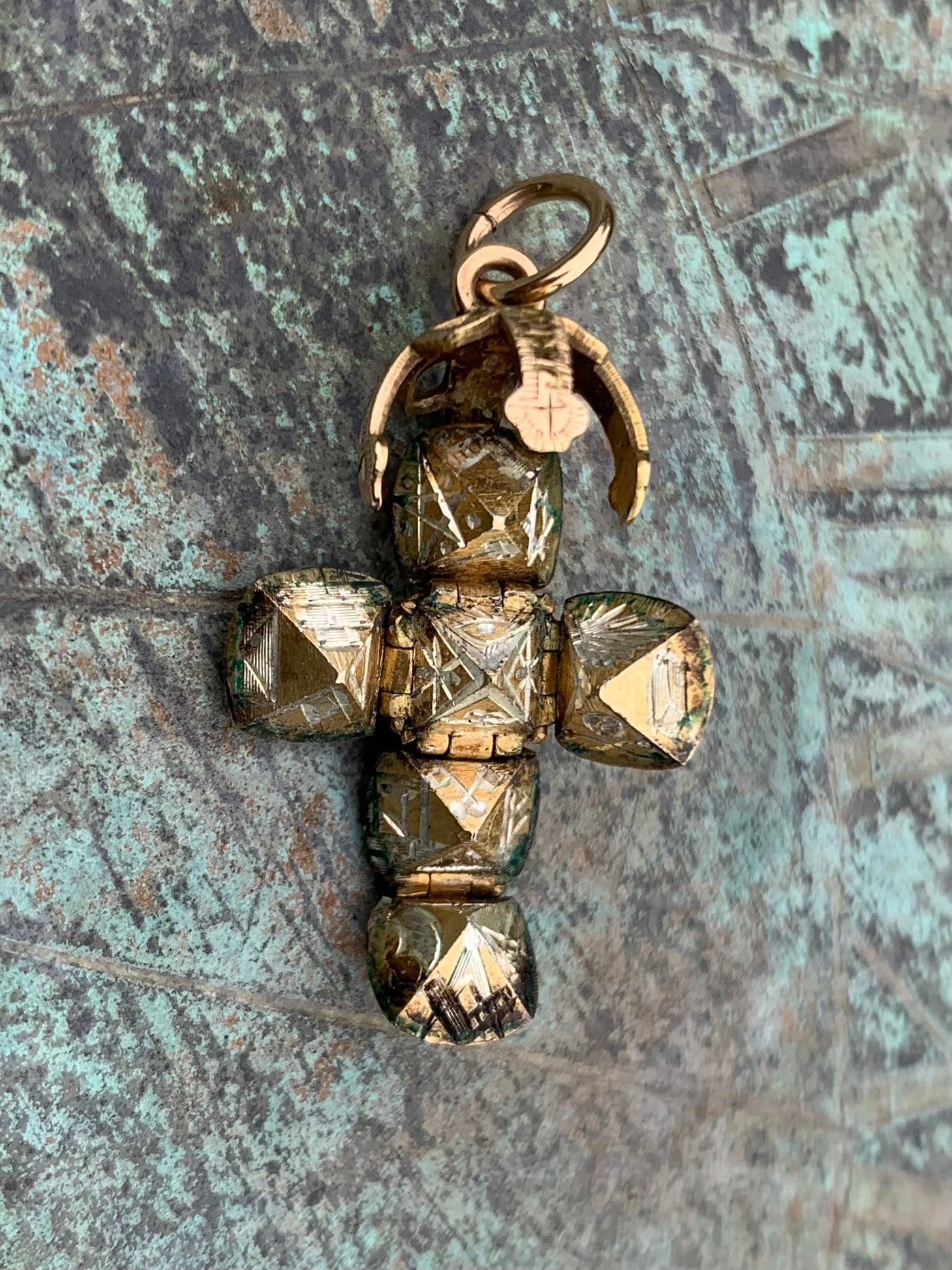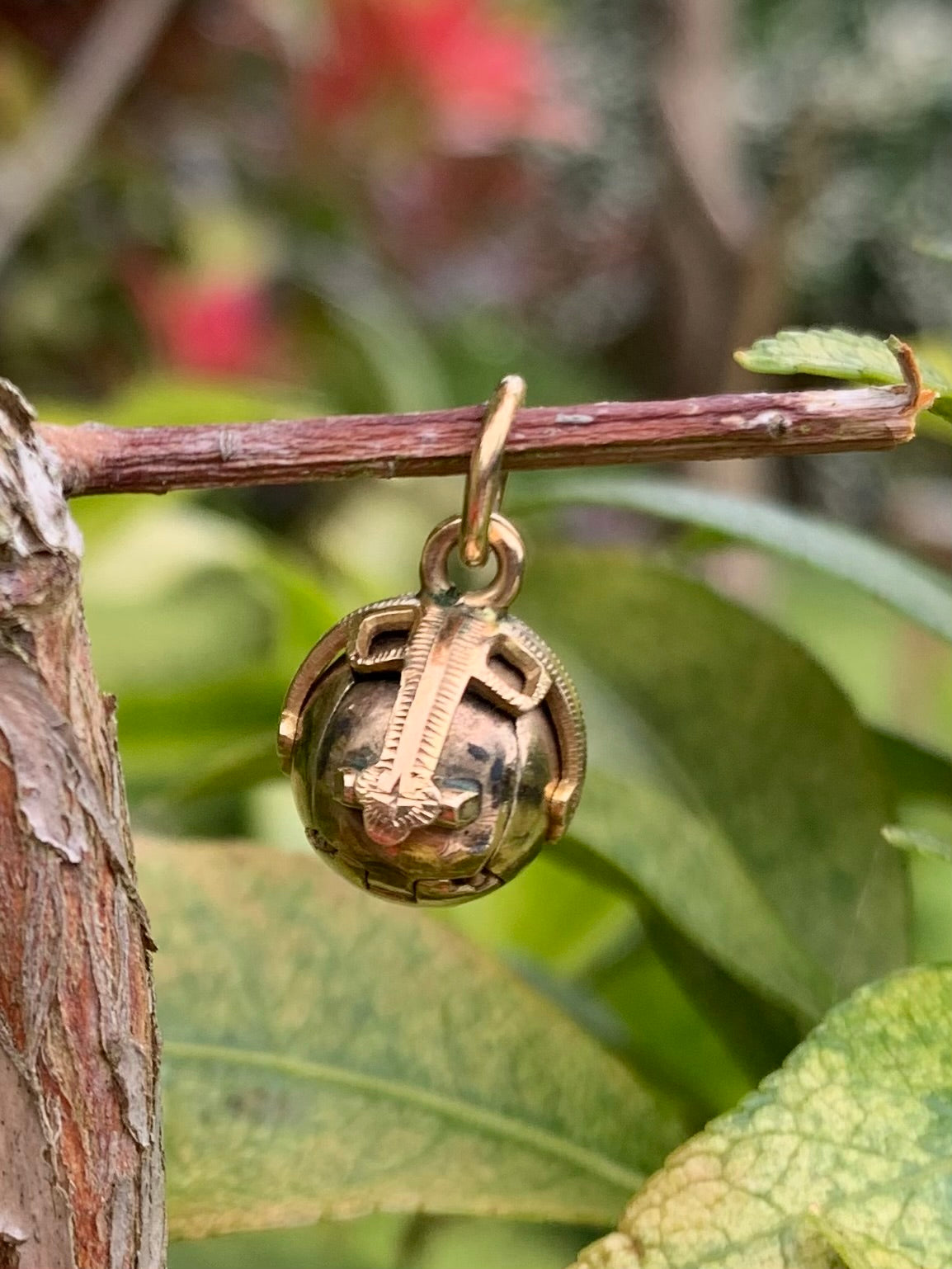 Rare Dainty Solid 9ct Gold & Silver (3.5 grams) orb pendant that opens into a cross to reveal carved masonic symbols. The pendant is unusually tiny compared to other masonic orbs yet very substantial.
