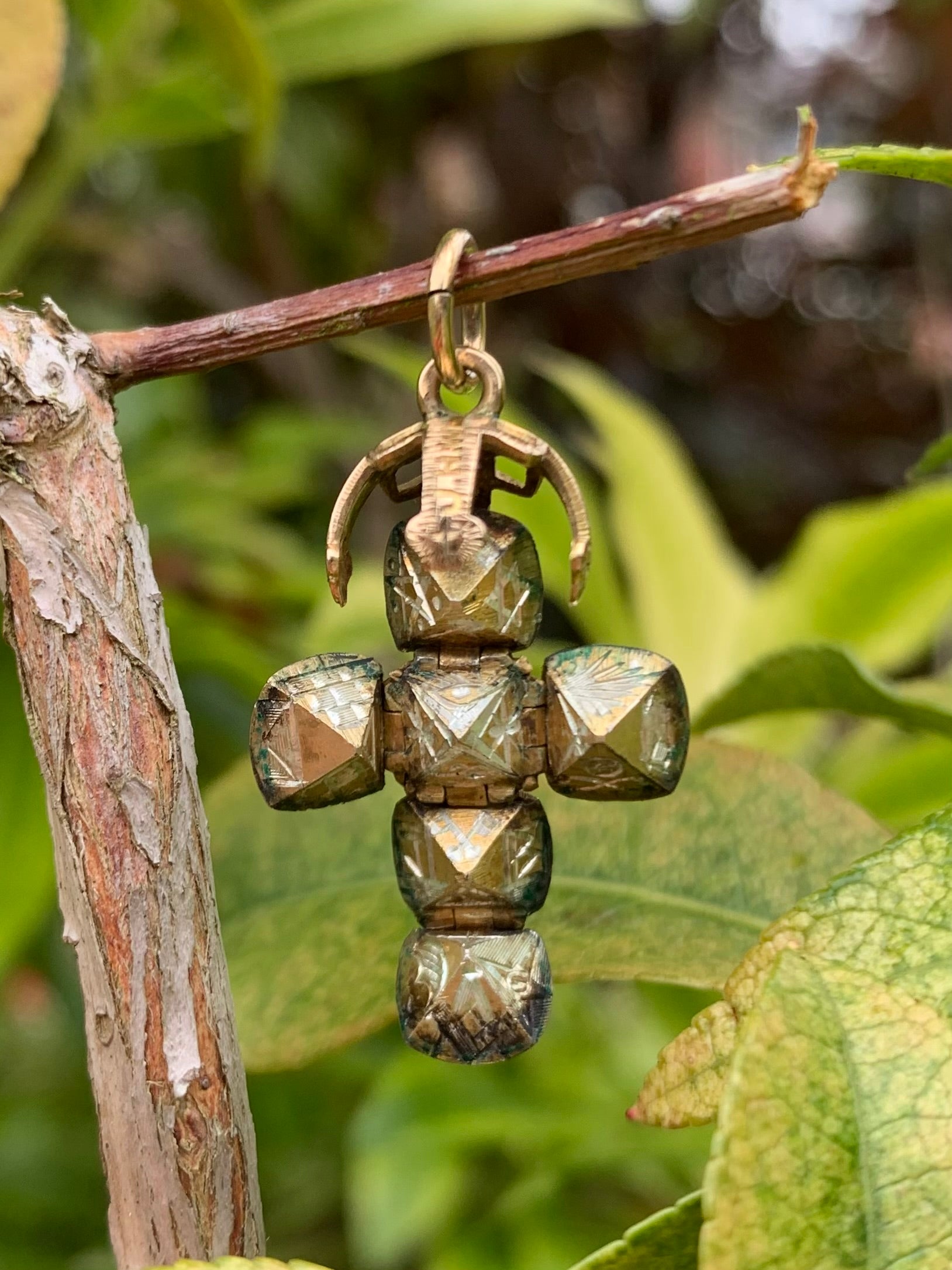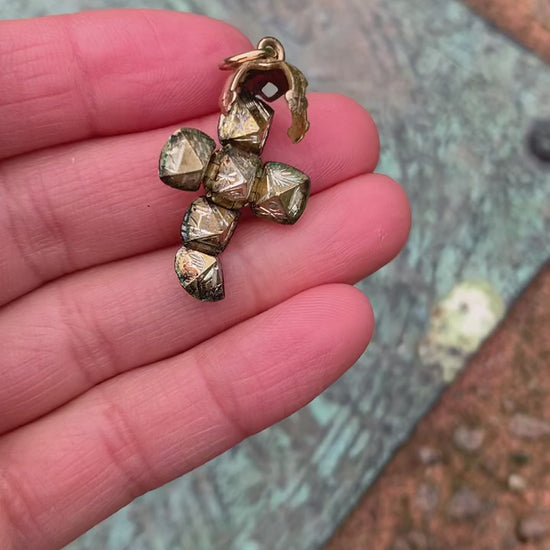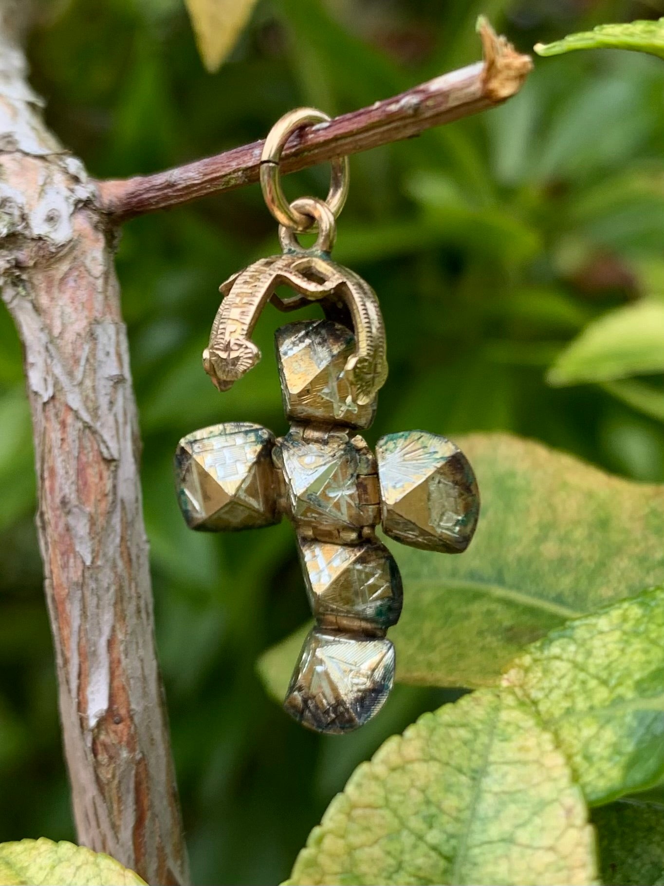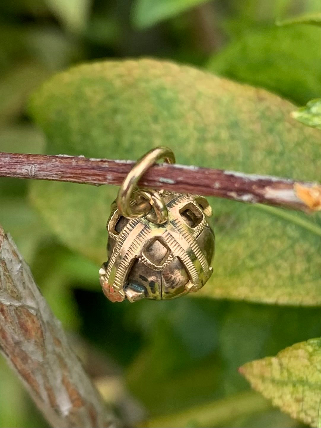 Rare Dainty Solid 9ct Gold & Silver (3.5 grams) orb pendant that opens into a cross to reveal carved masonic symbols. The pendant is unusually tiny compared to other masonic orbs yet very substantial.
