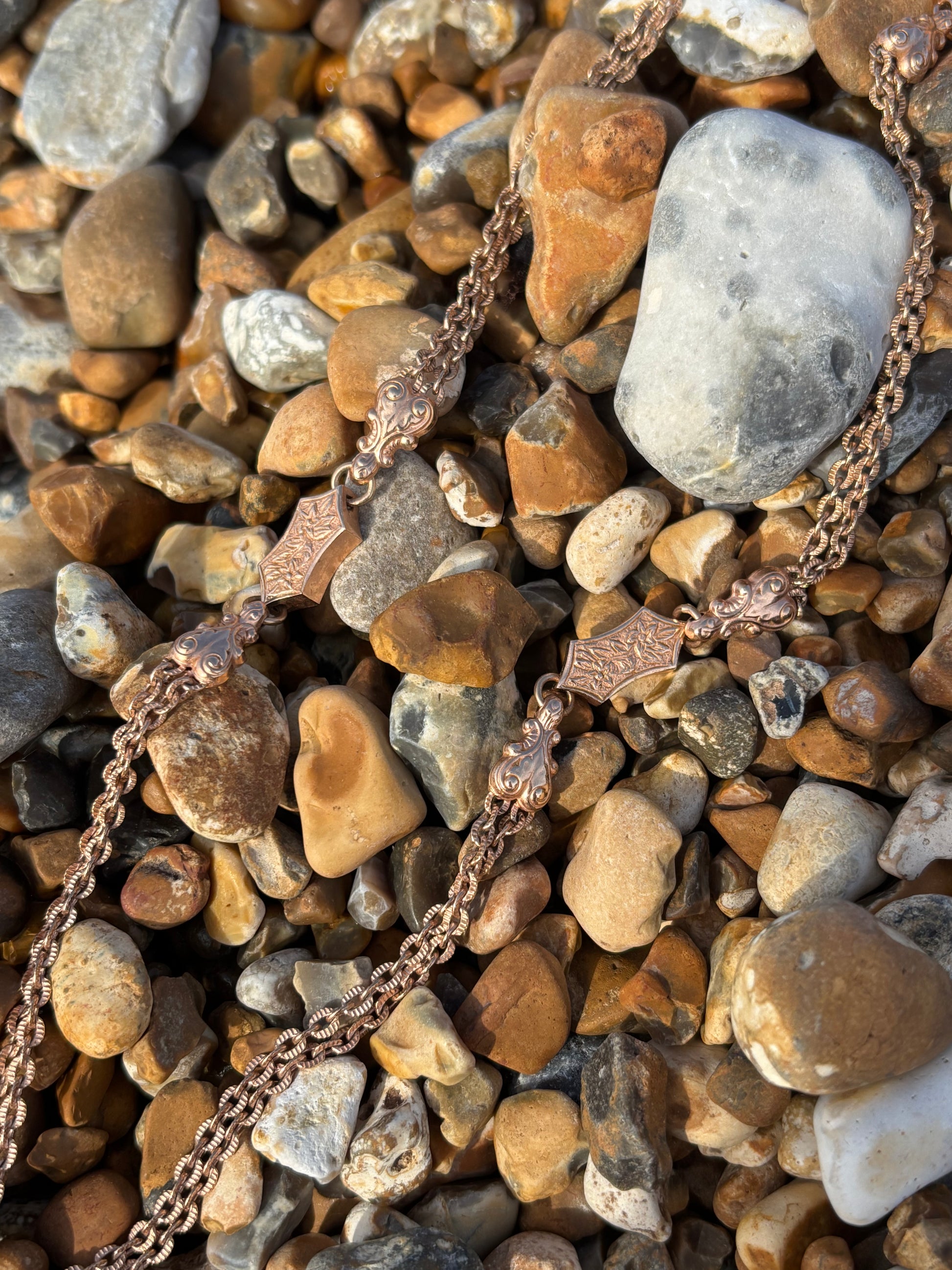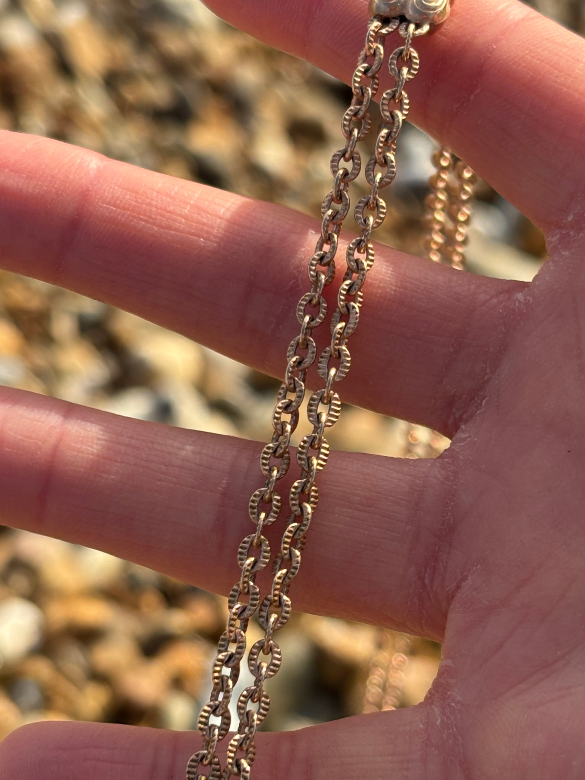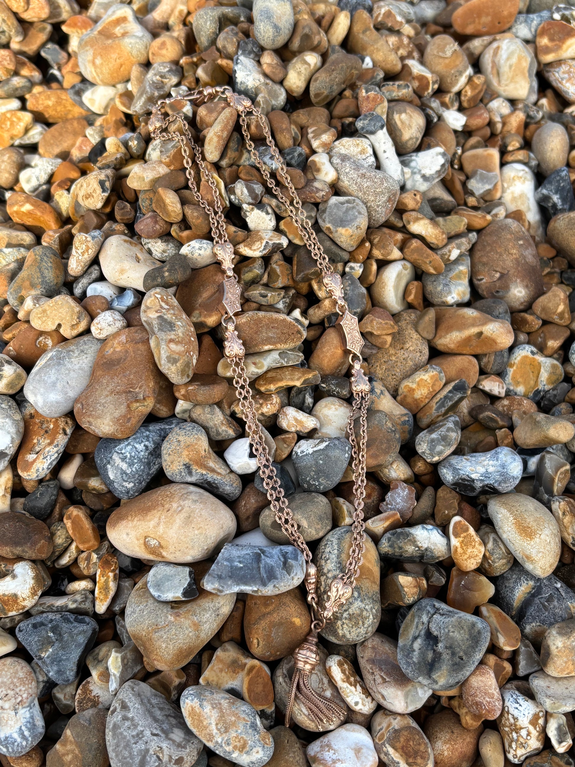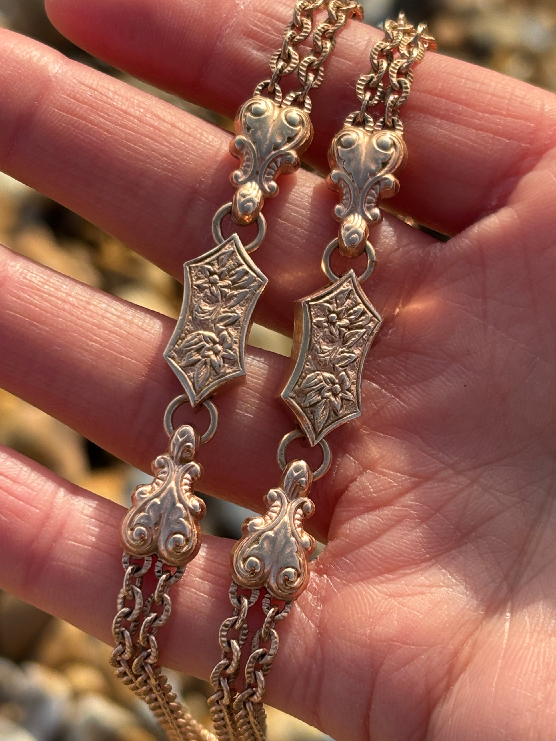 Please find for sale a Rare and Fabulous Antique Solid 9ct Rose Gold Longuard Albertina Fancy link with a tassel and two dog clips as clasps fully hallmarked for 9ct gold.