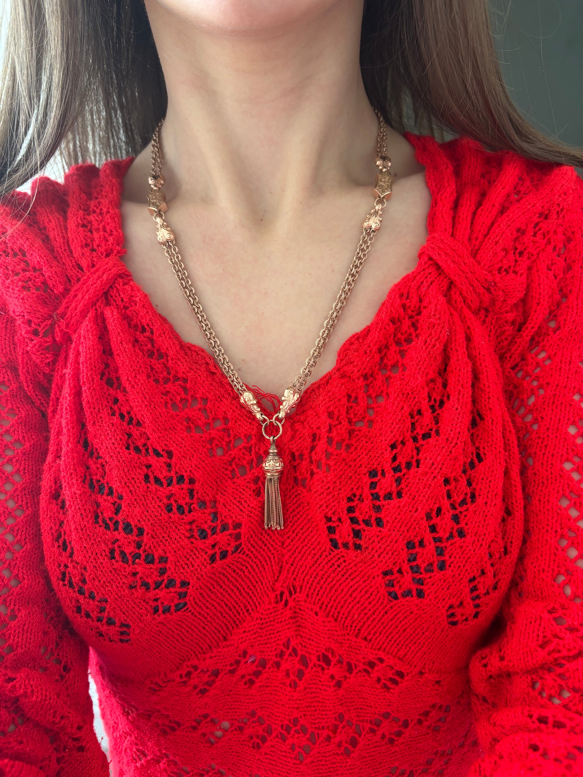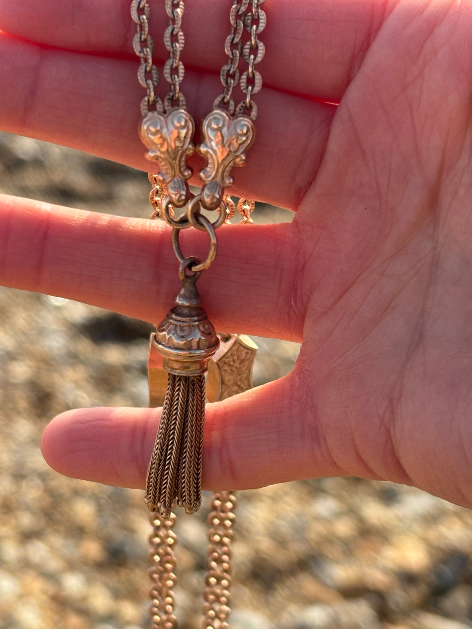 Rare Longuard Solid 9ct Gold Albertina Tassel Necklace