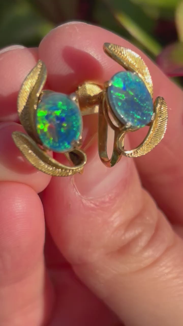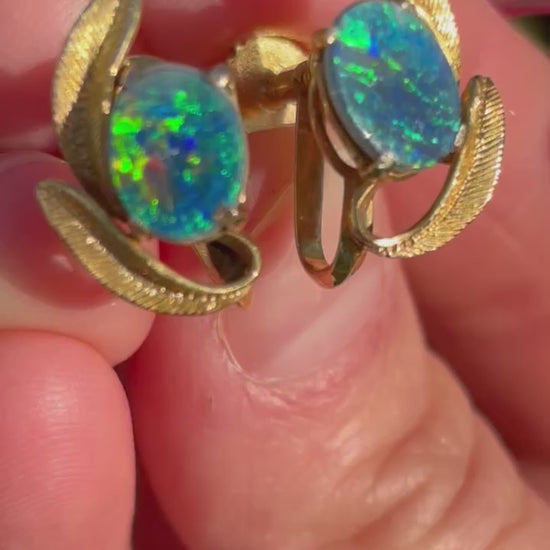 Striking 1.5ct Opal 9ct Gold Screw Back Earrings