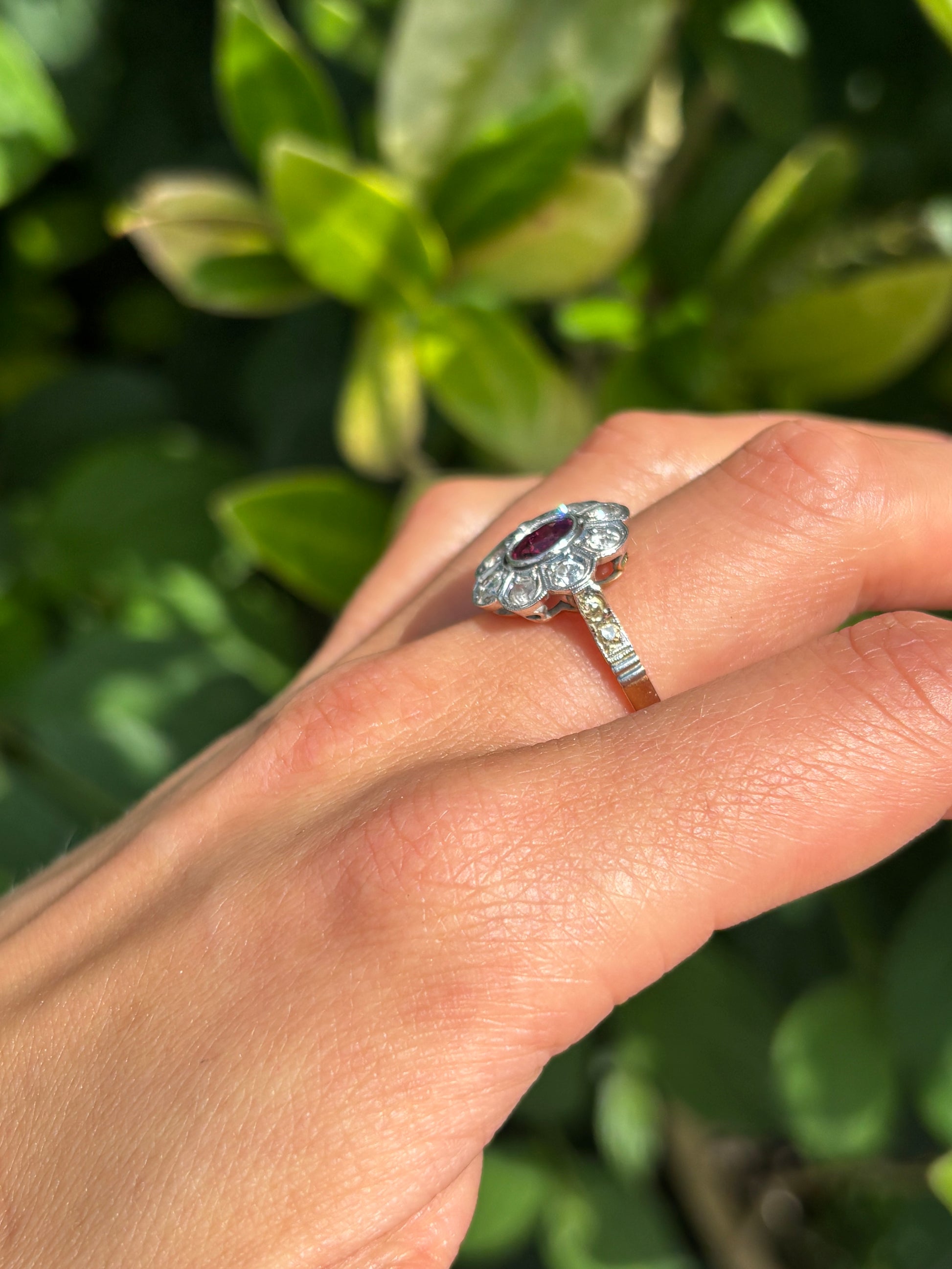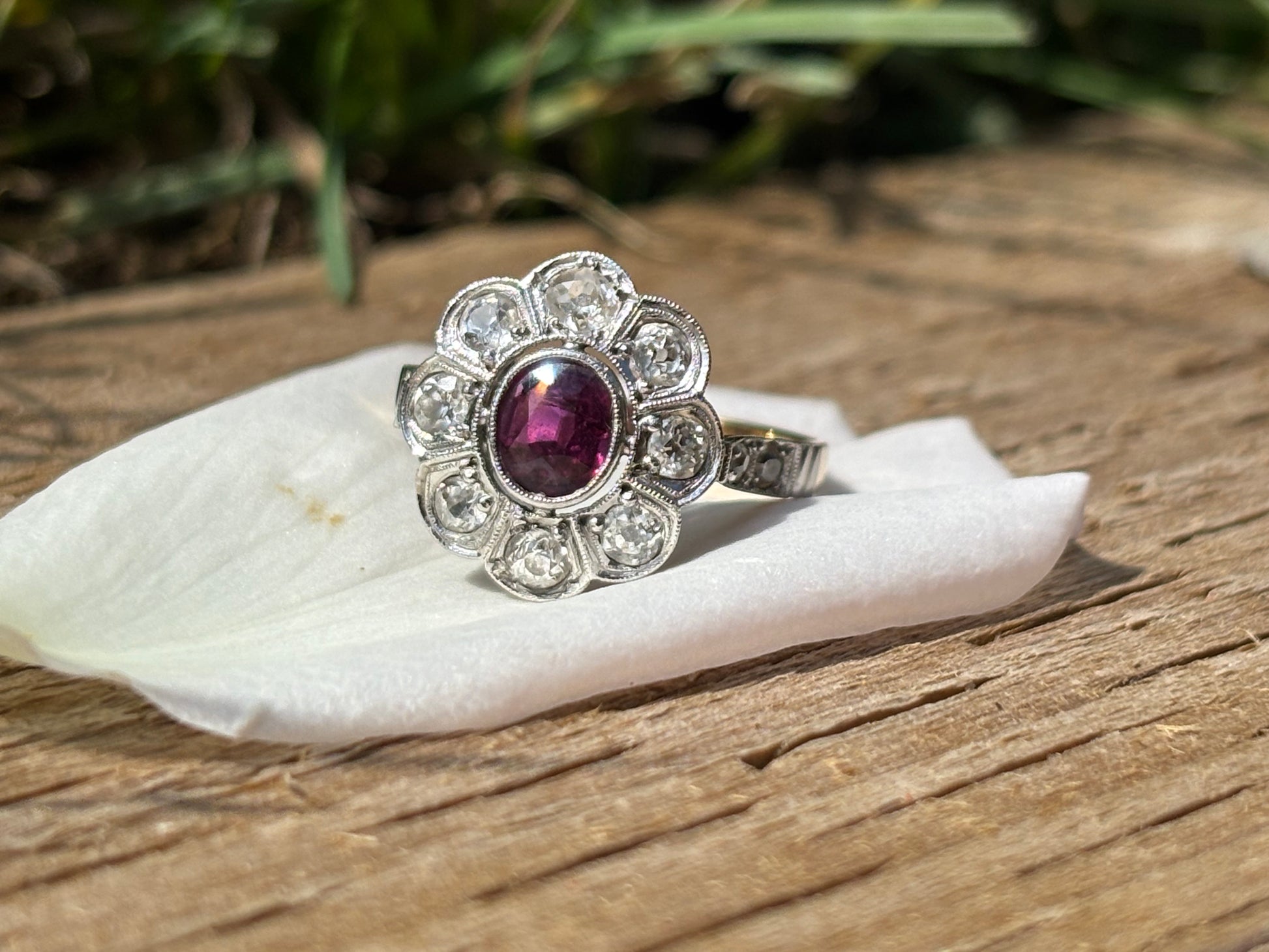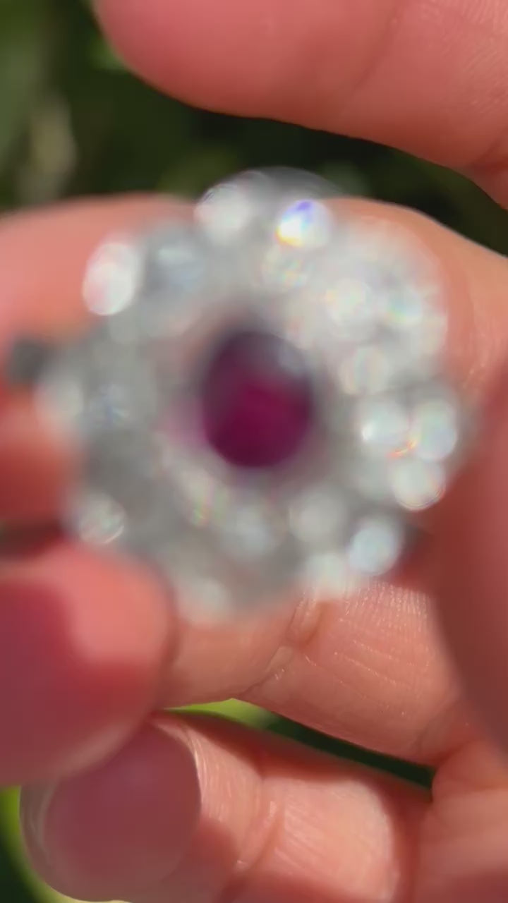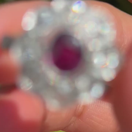 Vintage 0.75ct Ruby & 0.86ct Diamond set in 18ct God Cluster Ring