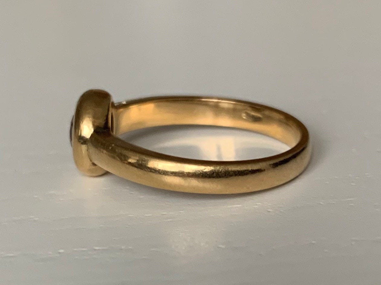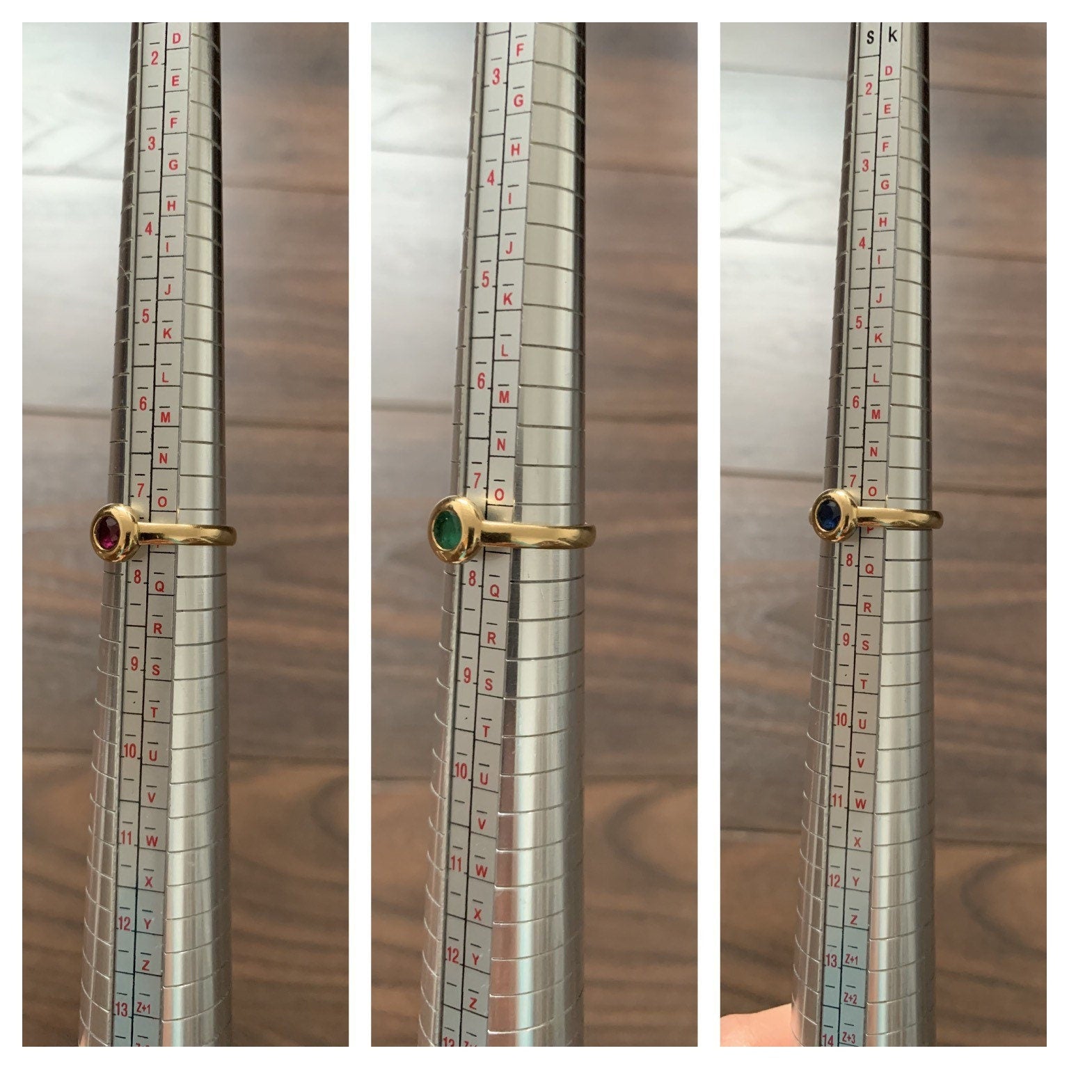 Vintage Blue Sapphire, Ruby and Emerald in a bezel setting moulded in 18ct Yellow Gold Minimalist Rings, perfect as Engagement Ring, Anniversary Gift, Wedding Ring, Birthday Gift, Unisex Rings. You choose the occasion, we have the gift.Hallmarked 750, 13 BS on the band.Dispatched with Royal Mail Special Delivery.