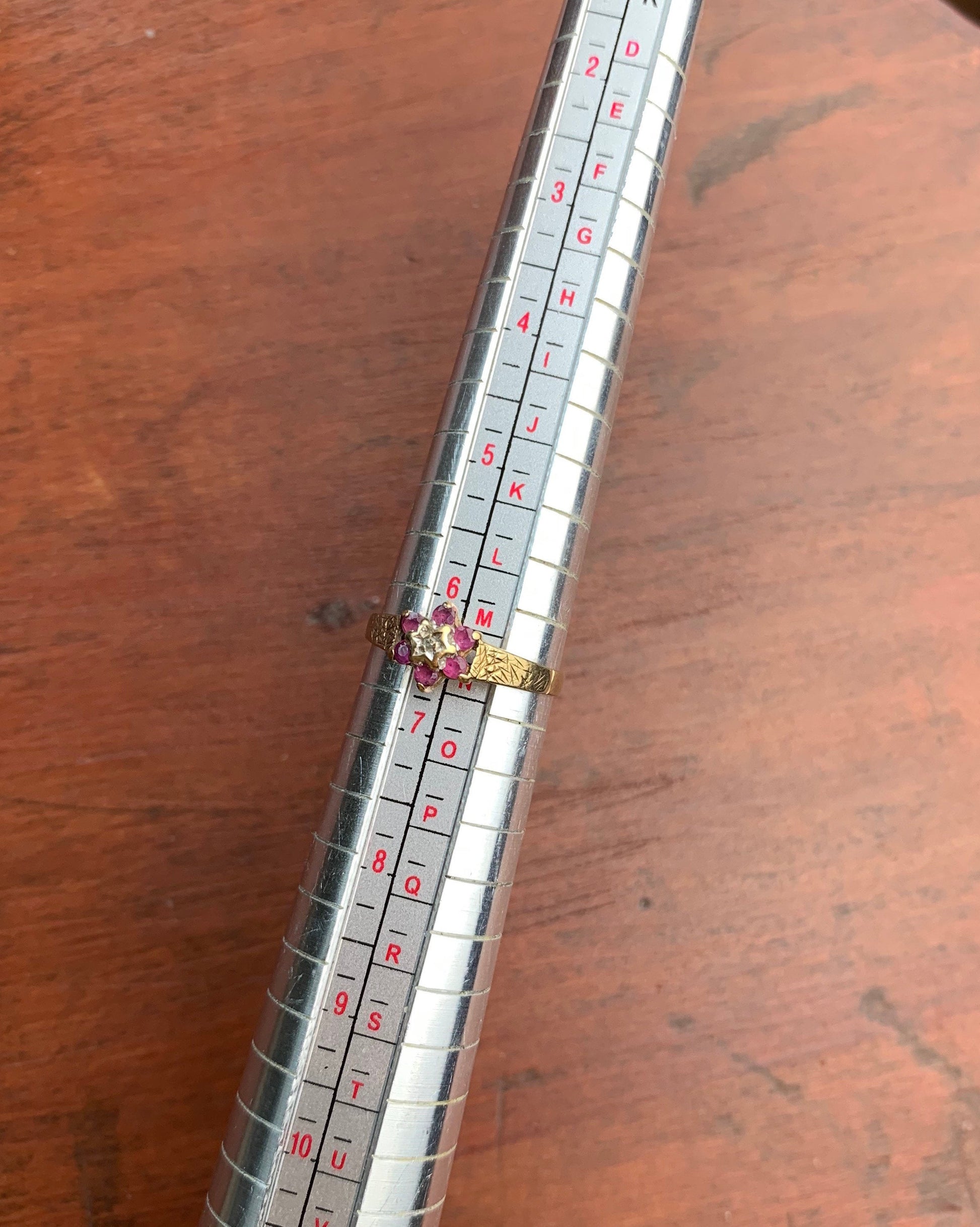 Vintage Ruby and Diamond Ring set in 9ct Yellow Gold, Size UK M 1/2, US 6 1/2